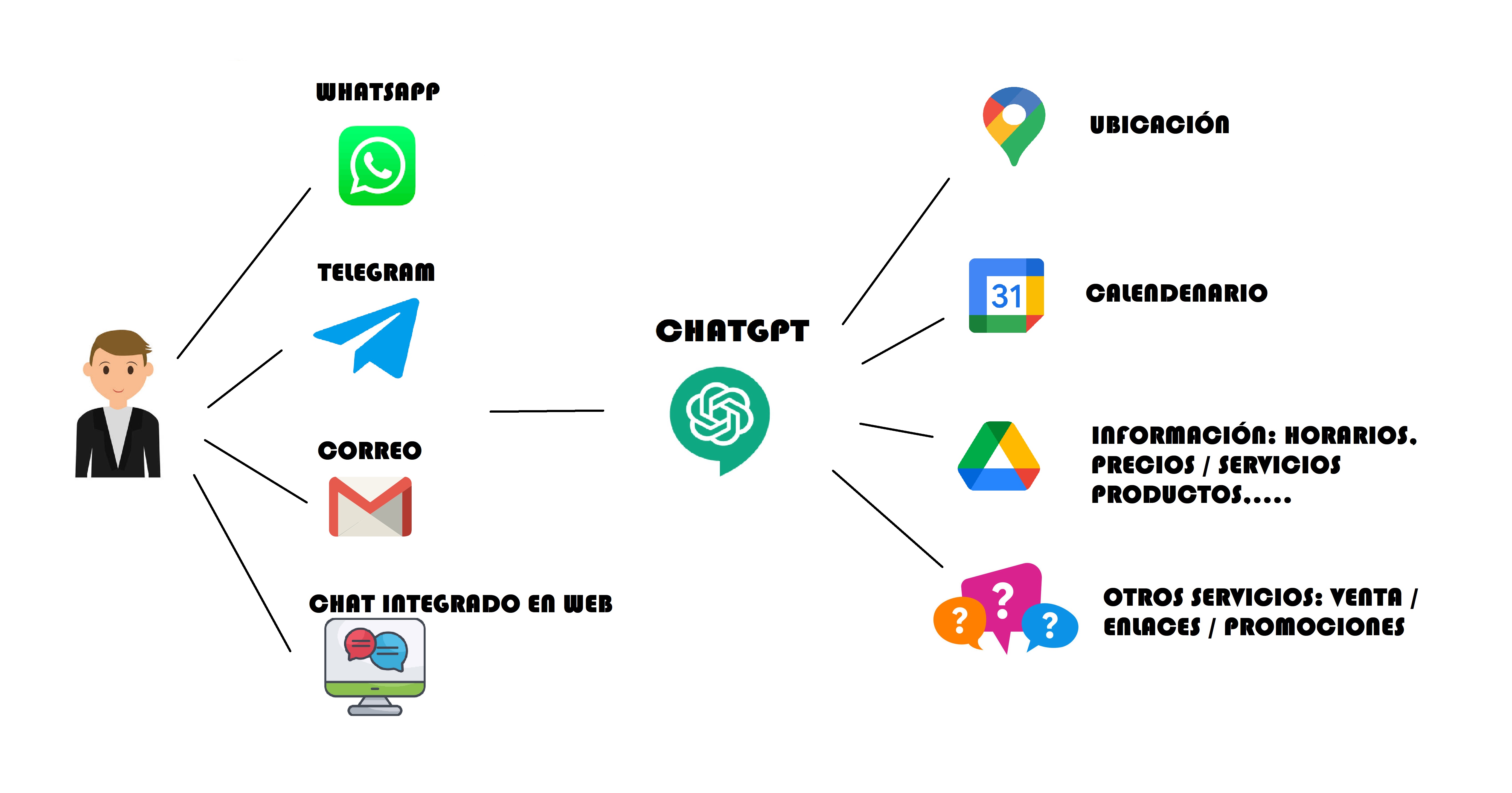 - Multicanal: Los chatbots pueden funcionar de manera coherente en diversos canales, como WhatsApp, Telegram, Correo o Web permitiendo una experiencia de usuario uniforme sin importar dónde se inicie la conversación.
