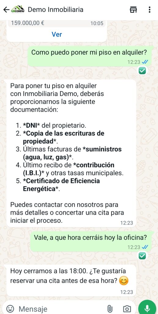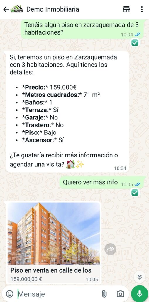 Tus usuarios podrán ver tu catálogo de pisos sin salir de WhatsApp.