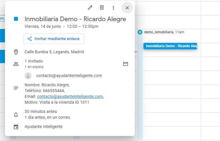 El asistente podrá tener acceso a un servicio de calendario, como por ejemplo Google Calendar, y cuando un cliente desee reservar una cita, presencial u online, el propio asistente podrá realizar la reserva de manera directa, anotando los datos del cliente y la fecha de la reserva.